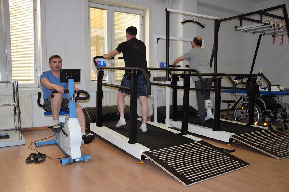 В комплекс реабилитационного оборудования входят велоэргометр, тренажер для верхних конечностей и разные виды артромотов для пассивной, активно-пассивной и активной разработки конечностей. Аппараты позволяют проводить комплекс профилактических, лечебных и восстановительных упражнений, нацеленных на разработку тазобедренного, коленного, голеностопного, плечевого, локтевого, лучезапястного суставов, что в целом способствует повышению функциональности всего организма.