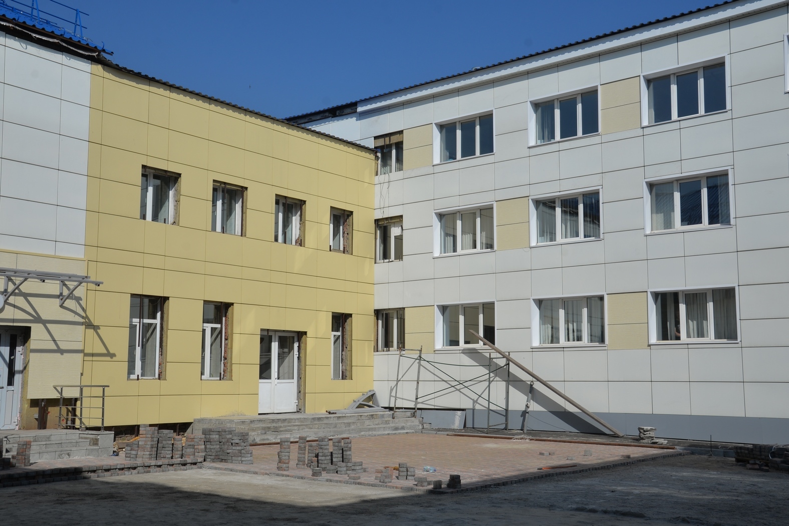 Уже выполнены общестроительные работы, отремонтированы кровля и фасад, заменены внутренние инженерные сети. Завершается внутренняя отделка и благоустройство территории.