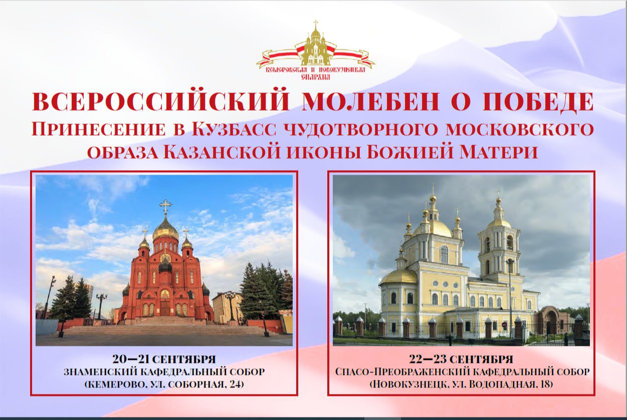 С 20 по 23 сентября в Кузбассе будет пребывать чудотворная икона Божией Матери «Казанская». Ее доставят в регион по благословению Святейшего Патриарха Кирилла в рамках Всероссийского молебна о Победе, который стартовал 6 мая 2024 года в Москве.