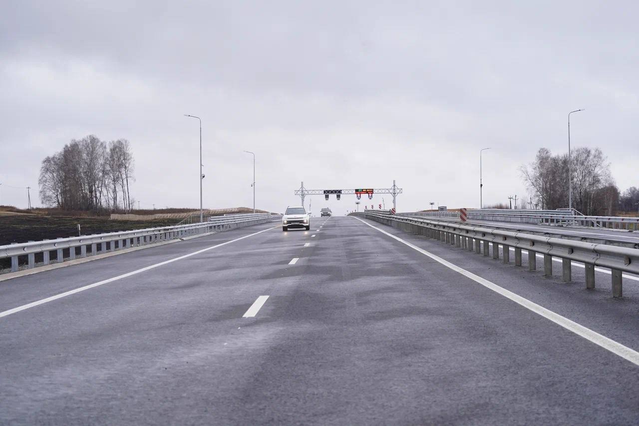 Первыми по новой дороге проехали большегрузы с гуманитарной помощью жителям Курской области.