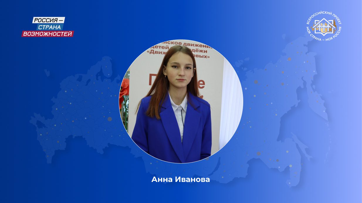 «Участие в конкурсе «Моя страна — моя Россия», который реализуется в рамках большой президентской инициативы «Россия — страна возможностей», стало для меня шагом к тому, чтобы рассказать о настоящих героях, которые живут среди нас. Благодаря проекту я поняла: героизм — это не обязательно подвиг на фронте. Это может быть подвиг в жизни. В семье. В профессии. И такие герои живут в моем городе», — поделилась Анна Иванова.