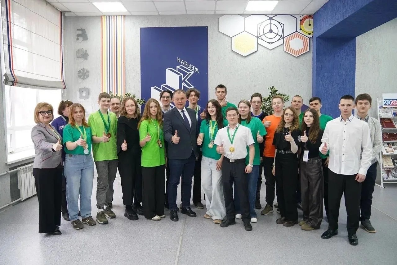 Губернатор Кузбасса Илья Середюк встретился с участниками и победителями чемпионатов «Абилимпикс» и «Профессионалы» в Кемеровском коммунально-строительном техникуме.