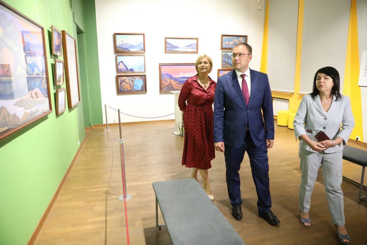 В Музее изобразительных искусств Кузбасса в рамках Года семьи открылся федеральный выставочный проект «Ковчег будущего», посвященной двойному юбилею — 150-летию со дня рождения Николая Рериха и 120-летию его сына Святослава. Экспозицию посетил врио губернатора Илья Середюк.