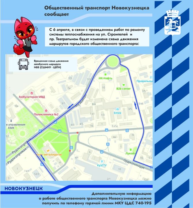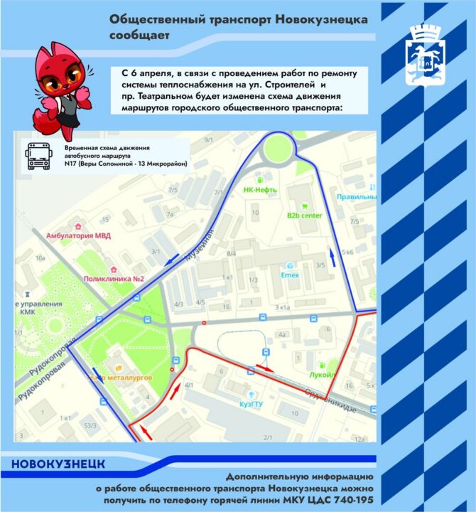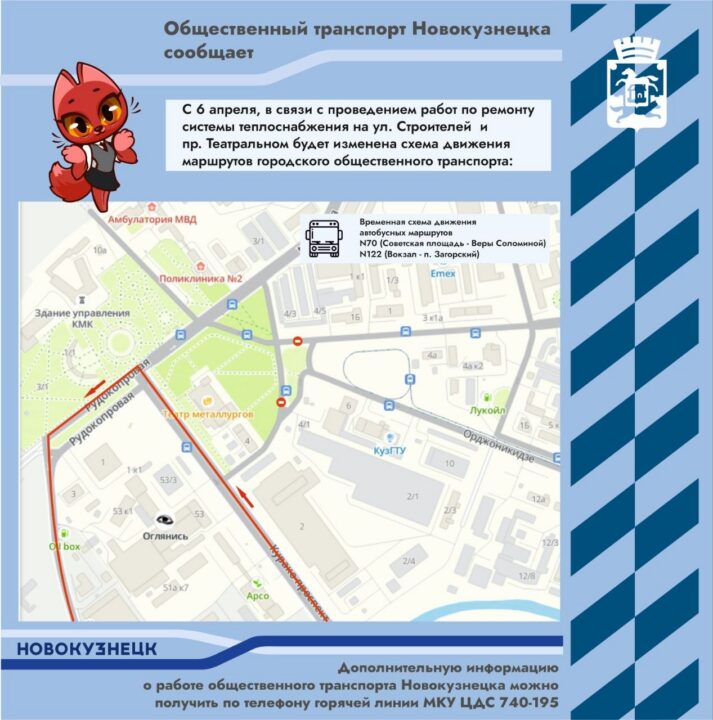 С понедельника 6 апреля из-за ремонтных работ на сетях теплоснабжения в Новокузнецке перекроют несколько участков дорог: движение транспорта будет закрыто по Театральному проезду и частично – по пр. Строителей.